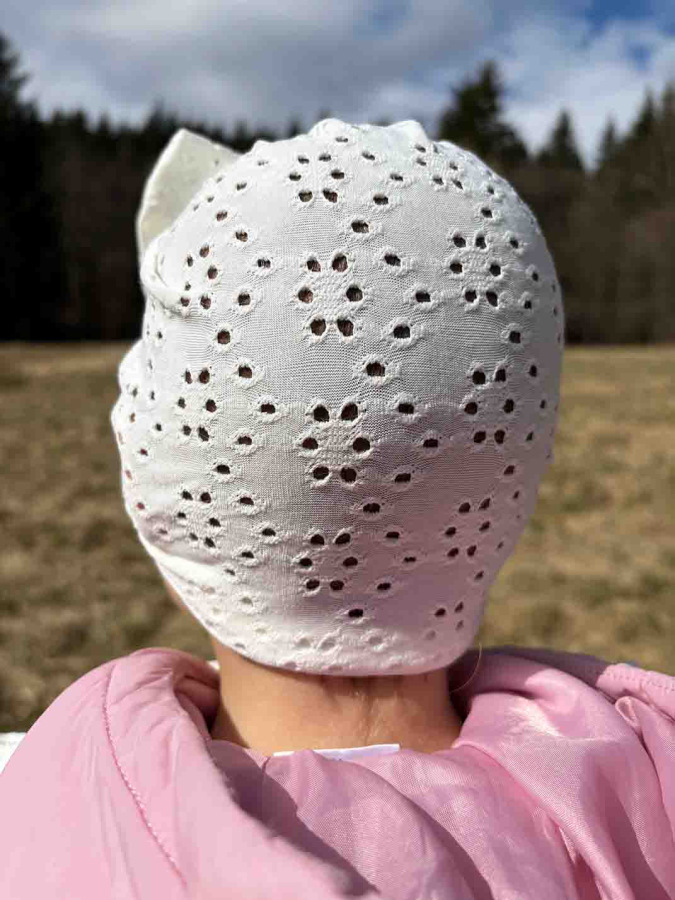 - Univerzálna veľkosť – elastický materiál sa prispôsobí tvaru a veľkosti detskej hlavičky.