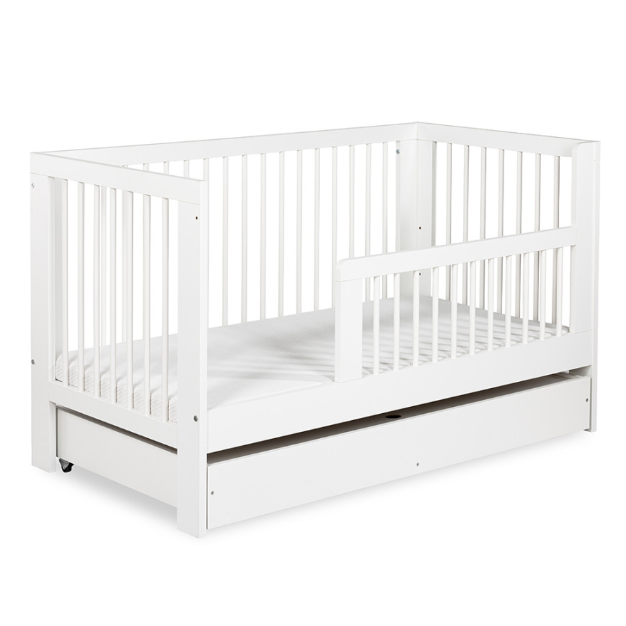 Postieľka OLIVIA v rozmere 140 × 70 cm je praktickým a bezpečným riešením pre bábätká aj staršie deti, ktoré rastie spolu s dieťaťom. Vďaka priloženej bariérke ju jednoducho premeníte na detskú posteľ, čím získate dlhodobé využitie jedného nábytku. Nadčasové biele prevedenie sa hodí do každého detského interiéru a pôsobí čisto a vzdušne.