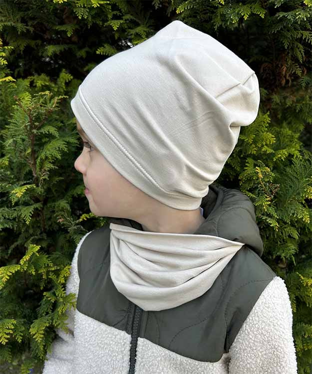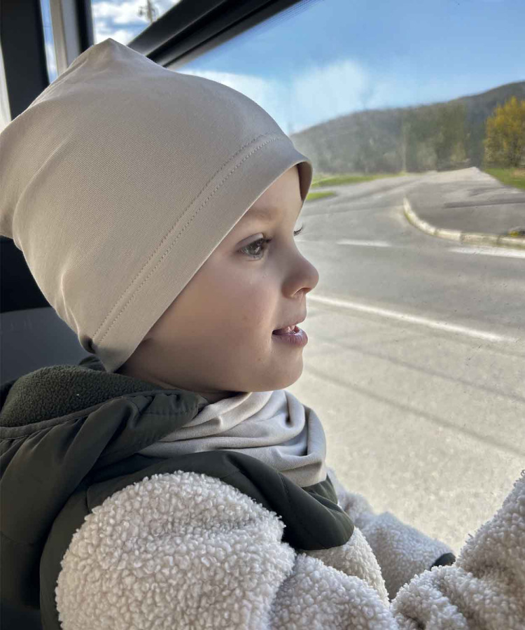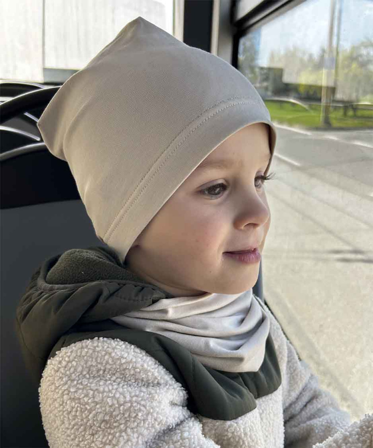- Príjemne pružný – vďaka 5 % elastanu sa prispôsobí hlavičke dieťaťa bez pocitu tlaku.