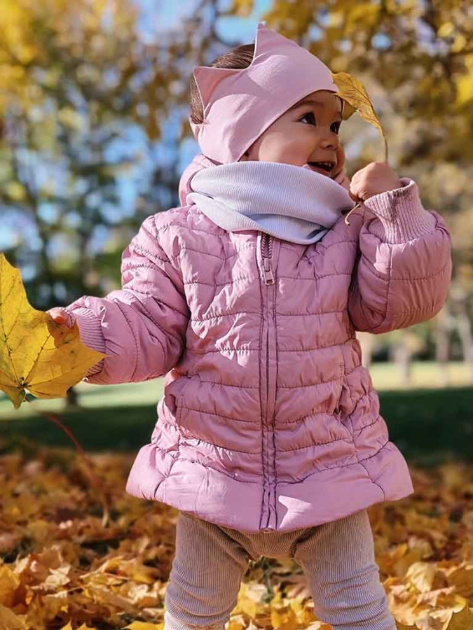- Štýlový doplnok – skvelo sa kombinuje s čiapkami a bundami v podobných odtieňoch.